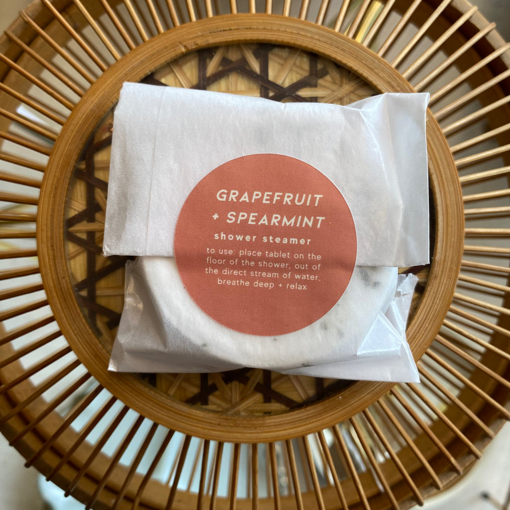 Your favorite shower steamers, in exclusive scents! Transform your shower into a spa-like retreat with our natural shower steamers! Simply place a tab in your shower, away from the direct stream of water, and let it fizz to release an intense, therapeutic fragrance. Perfect for sinus relief or simply unwinding after a long day. Packaging and Freshness: Our shower steamers are packaged in compostable envelopes and sealed with a label. This helps with merchandising, lasting freshness, and is excellent for gifting! Handcrafted with Care: Each steamer is handmade with love in Emmaus, PA, using only the finest natural ingredients: sodium bicarbonate, citric acid, and essential oil blends. Aromatherapy Blends: Grapefruit + Spearmint Floral (lavender, geranium, + ylang-ylang) Patchouli, Orange + Ylang Valentine's Products are currently preorder only and will begin shipping 1/13.
