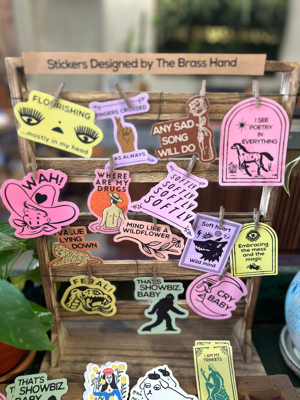 Water-resistant, sturdy vinyl sticker. Designed by your friends at The Brass Hand / Brass Earth, a woman-owned shop in Columbus, OH.