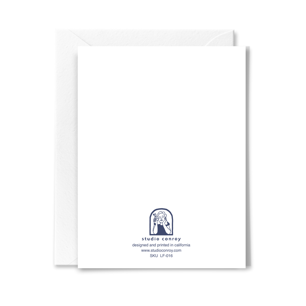 A2 (4.25 x 5.5") Blank inside so you can write your own special message. Comes with a white envelope and protective cellophane sleeve. We love imperfections! If you see a speckle or a dot, it's because these cards are printed on 100% recycled paper. Made in California