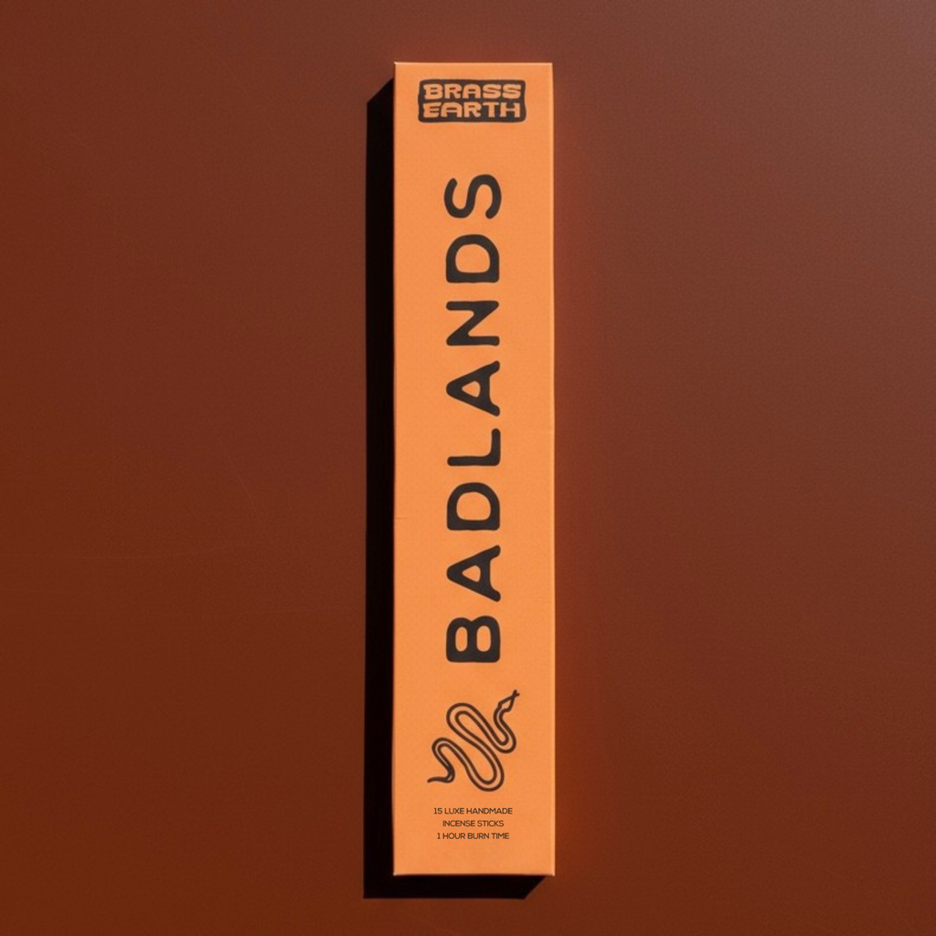 These luxurious incense are our bestsellers in our brick and mortar shop in Columbus, OH. Lovingly handmade by The Brass Hand/Brass Earth team, with a 1+ hour burn time, lingering fragrance, and addictive aromas, these will be bestsellers for you too. BADLANDS: A smoldering, sensual blend of hazelnut, lily of the valley, coriander, chocolate, citrus, and musk. Inspired by endless road trips across the desert, warm air rushing through open windows, and the sweetness of chocolate truffles melting under the sun. This aroma carries the heat of the highway—warm, sultry, and unforgettable. 15 sticks packaged in gorgeous soft-touch boxes Over 1 hour burn time Crafted with high-quality aroma oils
