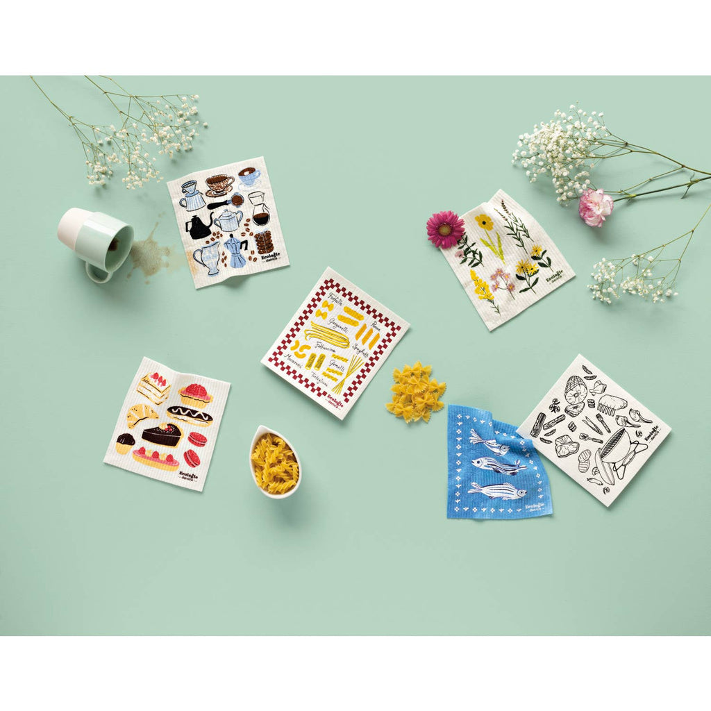 Wipe spills from the countertop big or small. Multitasking Swedish dishcloths are compostable cellulose sponge cloths that tackle any household jobs. Plus, it's perfectly safe to use them with a full range of cleaning products and wash them over 200 times. Swedish dishcloths are versatile, super-absorbent, reusable cleaning cloths that take on the tasks of sponge, dishcloth, and paper towel. Count on it for just about everything. • SIZE: W6.5 x L8in • MATERIAL CONTENT: 70% Cellulose, 30% Cotton • CARE INSTRUCTIONS: Machine wash warm lay flat to dry