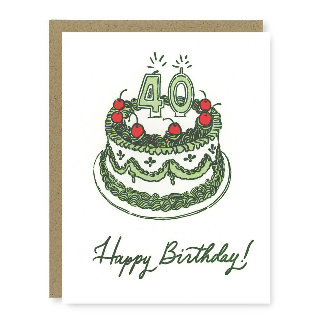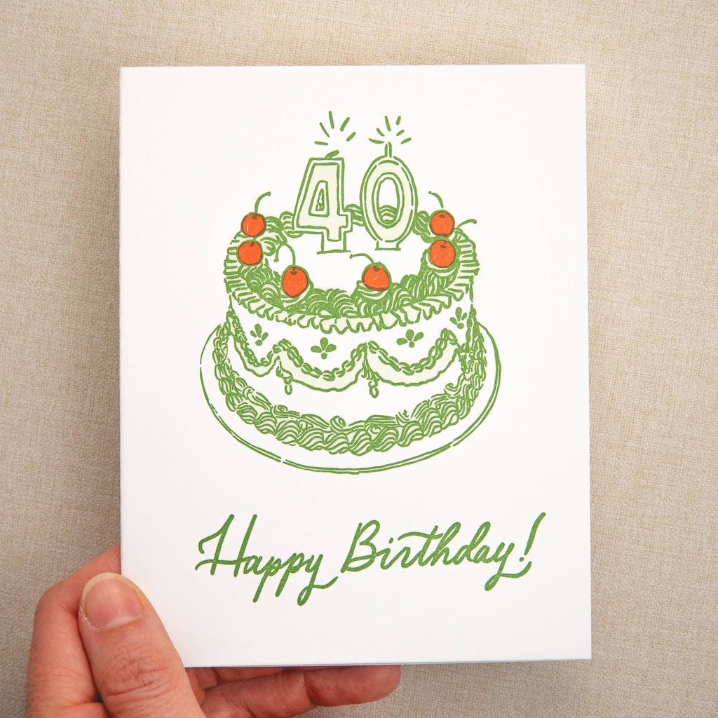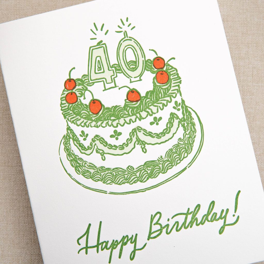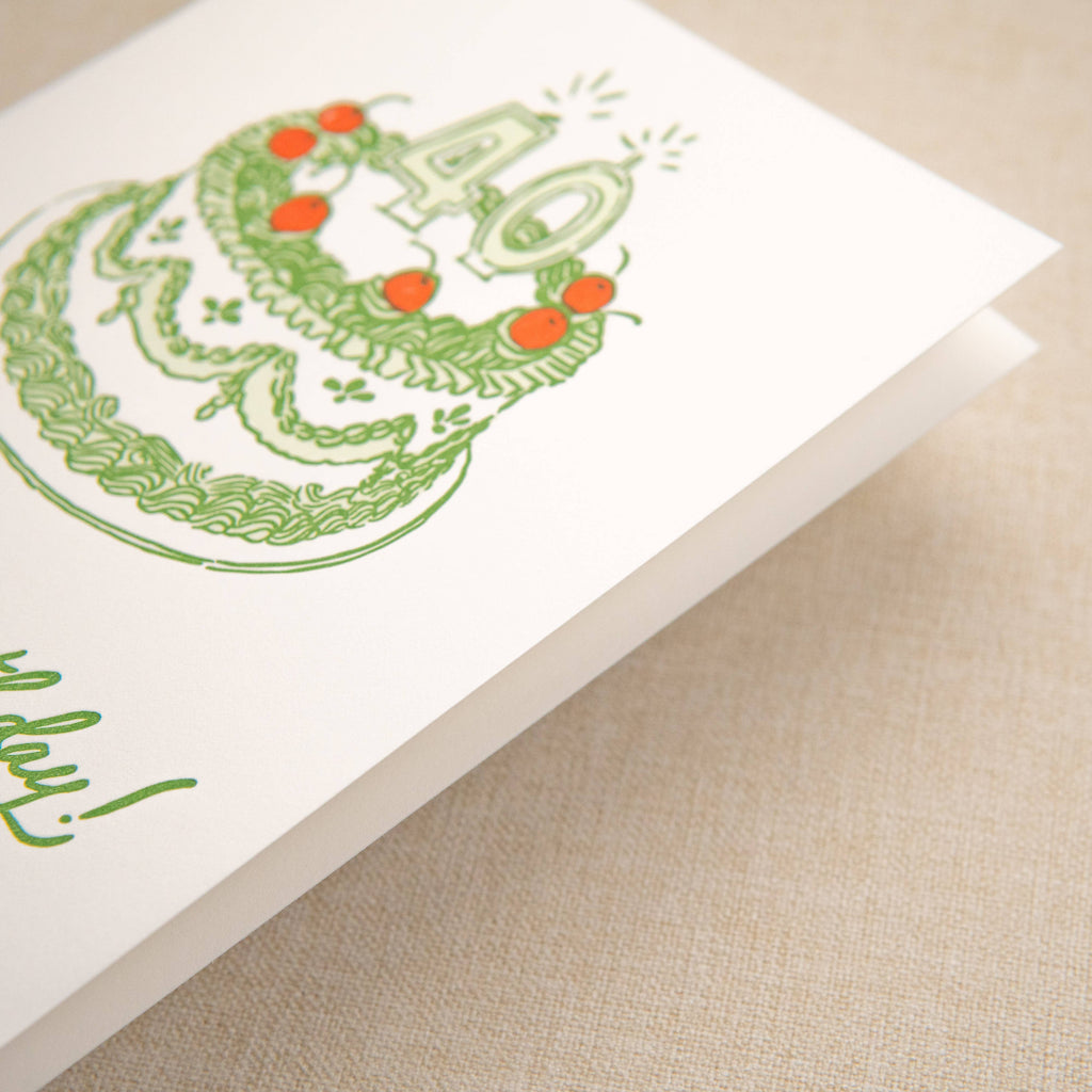 Kindred Letterpress - 40th Birthday Cake Card | Letterpress Birthday Card